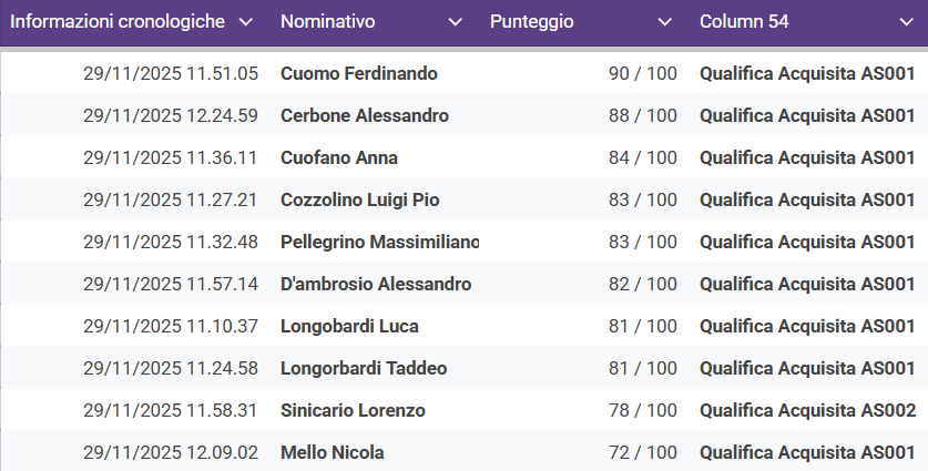 L’elenco non risulta completo in quanto 4 corsisti ripeteranno il test il 9/12/2025 per punteggio inferiore a 60/100.